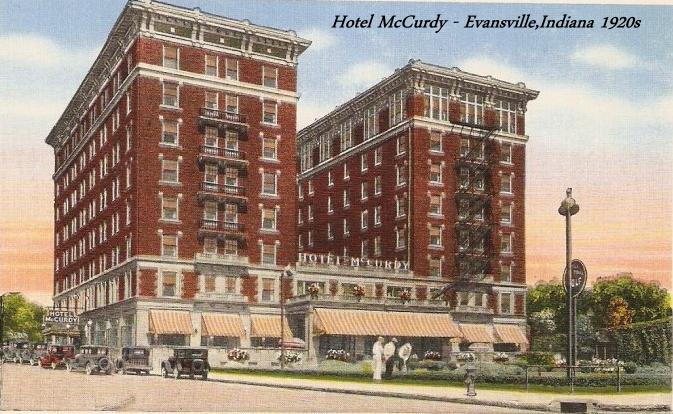 In 1916 construction began on the McCurdy Hotel at 101-111 SE First St. in downtown Evansville. McCurdy was a director of the Van Orman Hotel Operating Co. the firm that built the McCurdy Hotel and was headed by his friend F. Harold Van Orman. In addition to the Hotel McCurdy, the company built 5 other large hotels in the area; the Hotel Shawnee in Springfield, Ohio, the Hotel Orlando in Decatur, Illinois, the Hotel Nelson in Rockford, Illinois, the Terre Haute House in Terre Haute, Indiana and the Van Orman Hotel in Ft. Wayne, Indiana. Evansville?s 9-story 300-room Hotel McCurdy