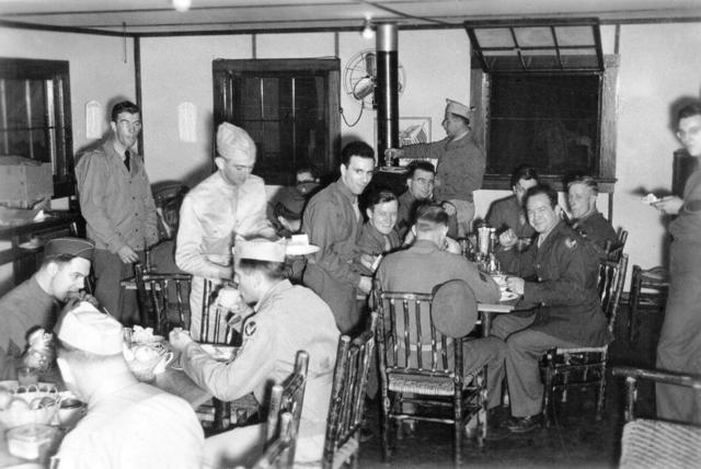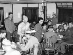 One night the women staffers were treated by 30 black sailors from the Great Lakes Naval Training Station. The young men sang 'Anchors Aweigh' in appreciation for dinner. Often the Canteen had volunteer entertainment for the troops.