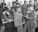 In February, 1946, as most USOs were closing their doors, a thank you dinner was held for the Main USO volunteers. More than 600 attended the event. Mrs. W. C. ?Mom? Hudson, the resident seamstress, said that it was more than just sewing; it was helping homesick boys feel better.